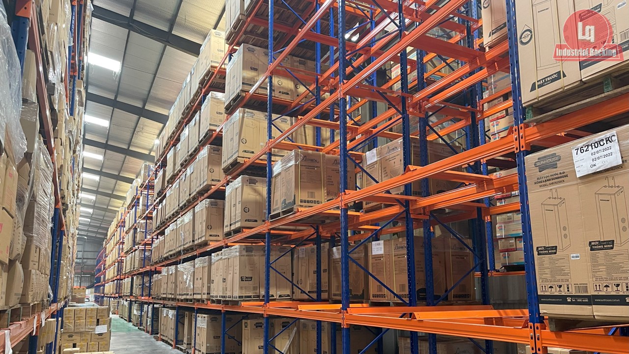 Ví dụ, so với kệ selective, loại kệ này giảm số lượng lối đi từ 30 - 40%, cho phép lưu trữ nhiều pallet hơn trên cùng một diện tích.